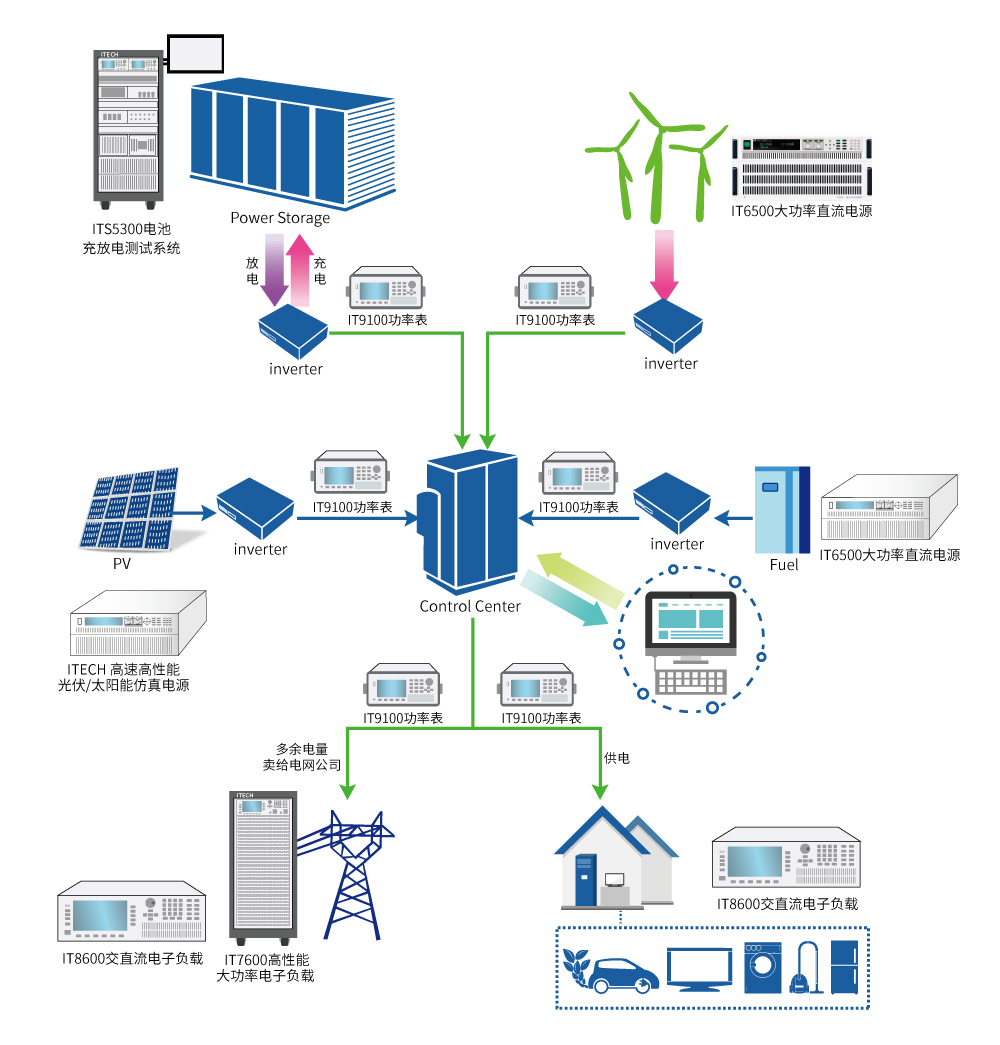 - 新能源发电光伏、风力、燃料电池模拟、储能系统模拟、交流负荷模拟、直流负荷模拟、电网模拟