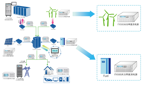 IT6500可以模拟各种风能、光能等自然能以及燃料电池,供电给逆变器直流输入端。