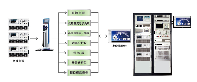 充电机主要应用给电动汽车上的动力电池充电,按是否安装在车上,充电机可分为车载式(随车型)和固定式。艾德克斯车载充电机测试方案的配置,硬件方面有电子负载模拟电池放电,AC电源模拟电网给充电机供电,搭配示波器和功率分析仪等设备,和上位机软件,对车载充电机进行完整的测试。