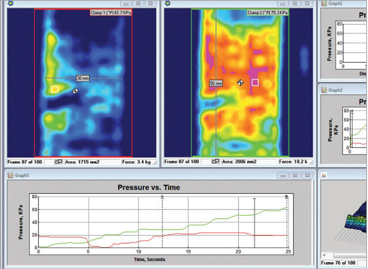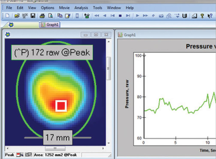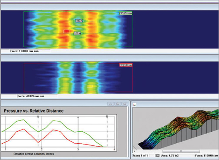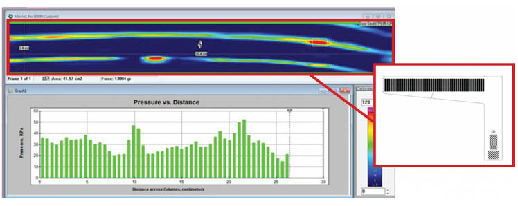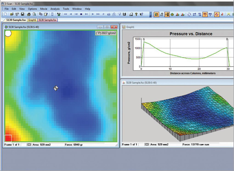 I-Scan™提供了压力量测技术更全面且高质量的分布,使用者可以以多种格式显示压力分布数据。而软体内也提供压力云图的即时显示、记录、回放与储存等功能,另外,使用者也可以在软体内创建分析框进行各种分析,也能将其导出为ASCII档以便供其他软体所使用。