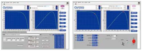 型号62150H-600S/1000S直流电源具有可模拟太阳能板的I-V曲线,使用者可编辑多种不同温度及照度下的I-V曲线及特殊有遮罩下的曲线,此可应用于太阳能逆变器的最大功率追踪(MPPT)效能测试。如图示A&B,使用者可非常容易地使用SoftPanel软体编辑I-V曲线后下载至单机内记忆体,并且可即时输出&量测显示太阳逆变器的最大功率追踪状况及记录。