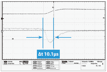 62000L系列为新一代直流电源供应器设计,输出电压能提供快速的响应速度。以62010L-36-7为例,当输出电流从3.5A以1A/us变化到7A,实测输出电压可于10.1us内回到15mV内的电压变化。