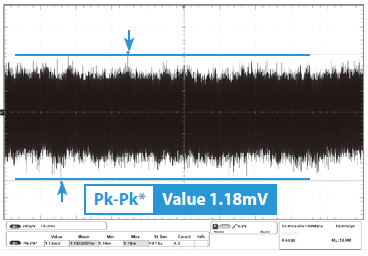 62000L系列提供纯净稳定的直流电源,实测62010L-36-7为例,以额定之最大电流且最大输出功率,输出电压杂讯测得1.18mVp-p (20~20MHz)。