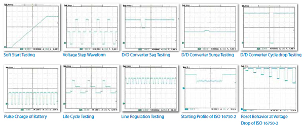 62000P系列电源供应器另一个功能为可建立复杂的DC暂态波形。此功能可对设备进行输入电压漏失瞬断和其他电压变化等测试,是用于飞机设备测试、反用换流器测试和其他会产生电压中断之设备测试的理想选择。其应用的范围包括DC/DC 转换器和反用换流器、压降测试、引擎启动模拟、电池自动充电、电子产品生命周期测试等等。