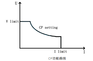 FTH提供恒功率(以下简称CP)输出功能。电源输出一个恒定功率,输出电流随着输出电压线性调整以确保输出功率不变。当负载超出了电源设定的调节范围,电源输出将维持在最大设定值。其功能曲线如下图所示: