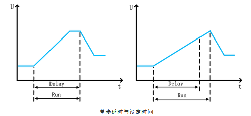设置电源输出电流。运行该步骤时,电源输出电流按照当前电流斜率改变至设定值。 此测试步骤可设置单步延时,可设范围0~60000ms。
