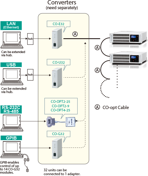 Output ON/OFF, setting the value of output voltage/current, switching CV mode and CC mode