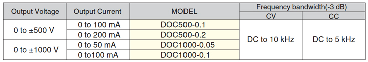 DOC series are ±500V / ±1000V high voltage four-quadrant bipolar power supplies. With its feature of voltage limit and current limit setting at will. It will drastically reduce the risk of applying excessive stress on your load. The output terminal is available on the front panel for excellent operability.