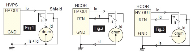 Using the RTN terminal COR enable you to control the drum current(Id) precisely even if the drum is grounded or not. (fig2. and 3.)