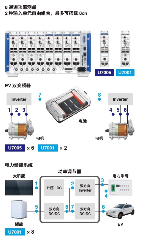 使用1台PW8001,即可同时测量8个通道的功率,能轻松实现多系统设备的整体评估。