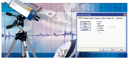高性能控制器OFV-5000采用宽带数字解码技术,可与Polytec一系列高灵敏度光学头配套使用,具有远程聚焦、自动聚焦和聚焦存取功能(光学头OFV-505)。系统可在距目标0.5米~100米距离上测试,具有极高的测量分辨率和极大的动态测量范围,可测量原子级微弱振动到数十万g冲击。高精度直接输出速度(分辨率优于0.02μm/s)和位移(条纹计数原理,精度达pm级)。