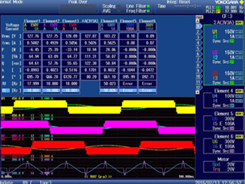 电动及混合动力汽车有许多电子和机械部件, 因此, 整体性能评价需要对效率进行测量。 WT1800E可以执行6个功率输入的测量, 操作灵活且拥有宽带宽, 是测试和评估变频器输入和输出之间效率的理想工具。 通过选配电机评价功能, WT1800E可以测量转速和扭矩变化。
