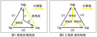 - 三角形-星形转换: 在三相3线制(3V3A制)系统中根据线电压计算相电压(图2)。